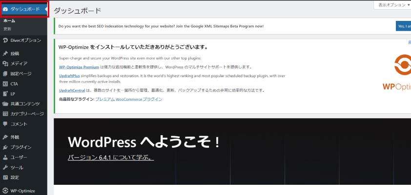 左上のダッシュボードをクリック
