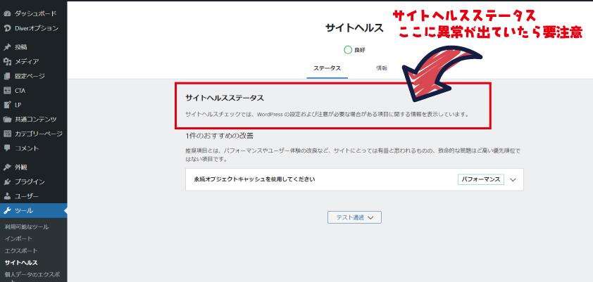 確認事項WordPress管理画面のサイトヘルスステータスってわかりますか?