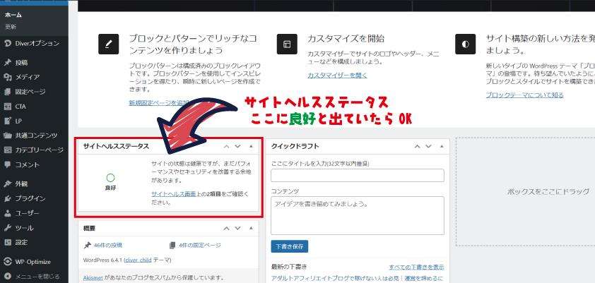 WordPress管理画面のサイトヘルスステータスが健康である事